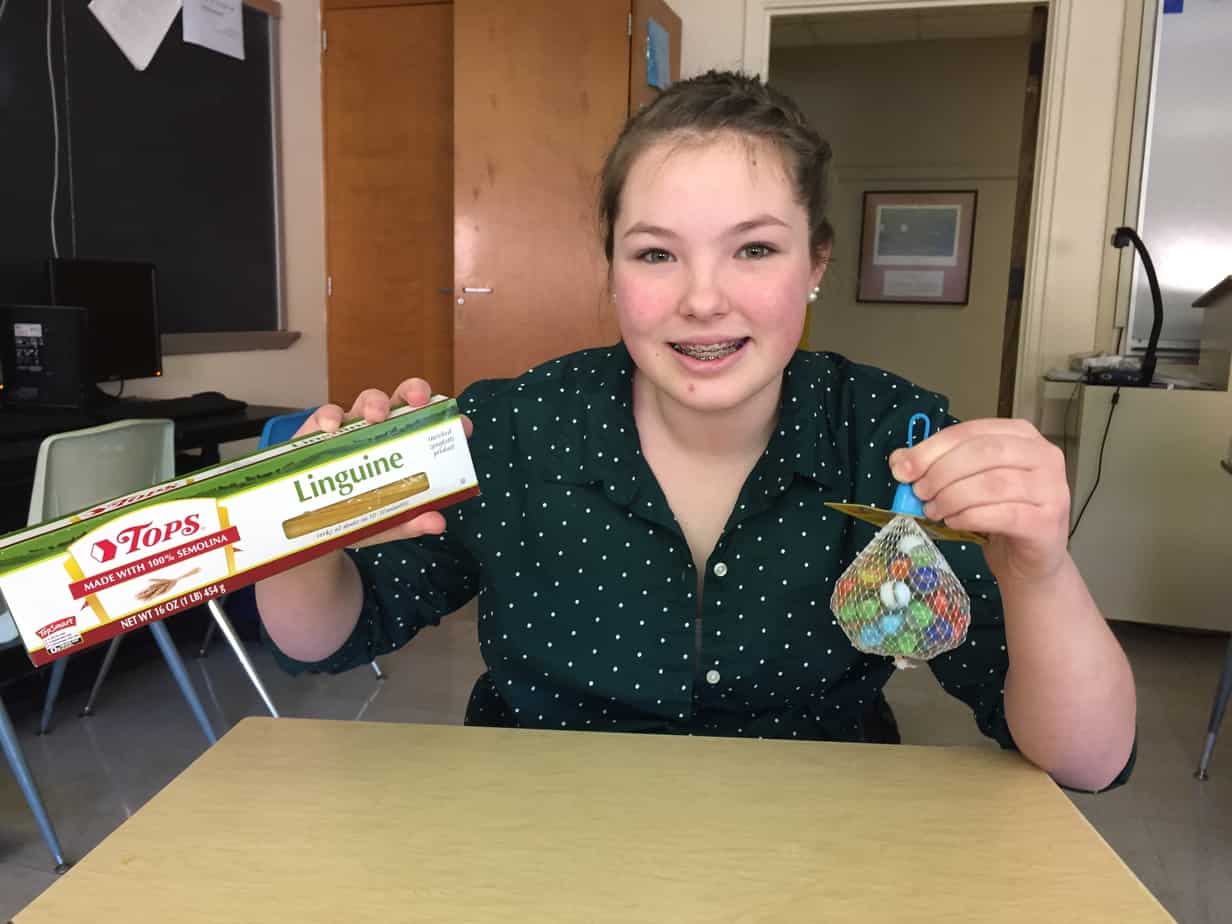 Students recorded how many marbles were required to snap 1, 3, 5, 7, and 9 strands of spaghetti.